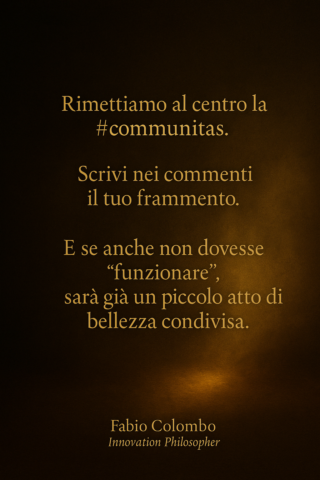 In questo respiro collettivo, la #communitas rinasce come un vaso mai finito, continuamente riparato da chi ne abita i margini.