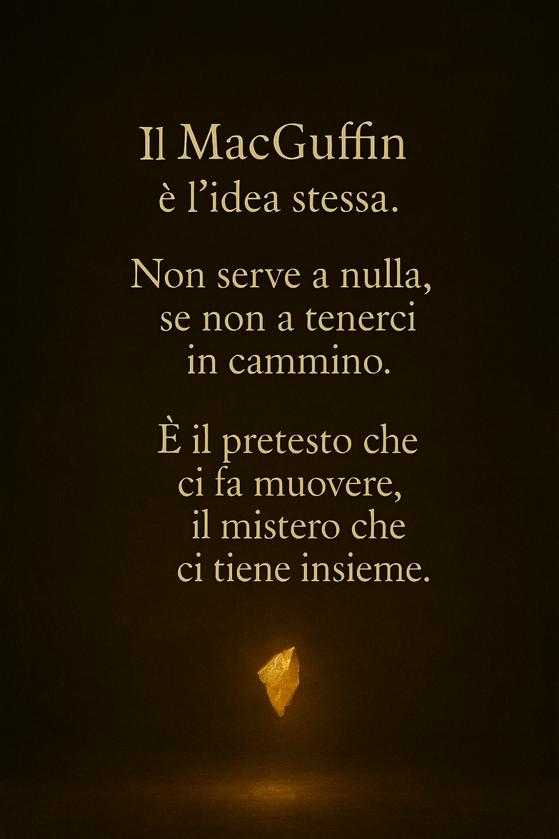 Nel nostro caso, il MacGuffin è l’idea stessa — fragile, inutile, ma viva — che attraversa mani e pensieri per ricordarci che innovare è partecipare allo spazio dell’altro.